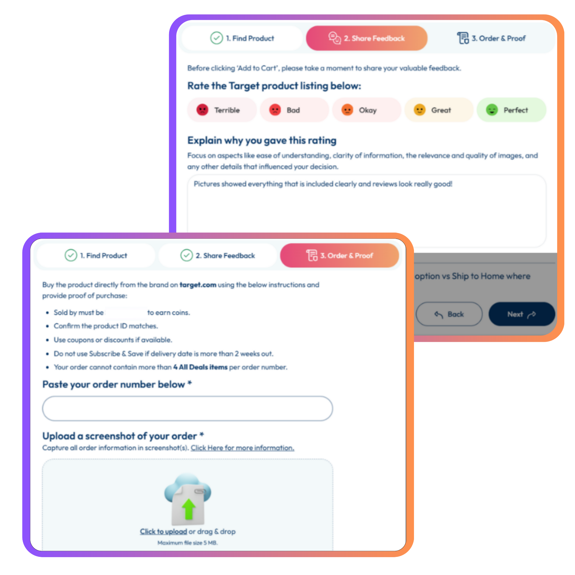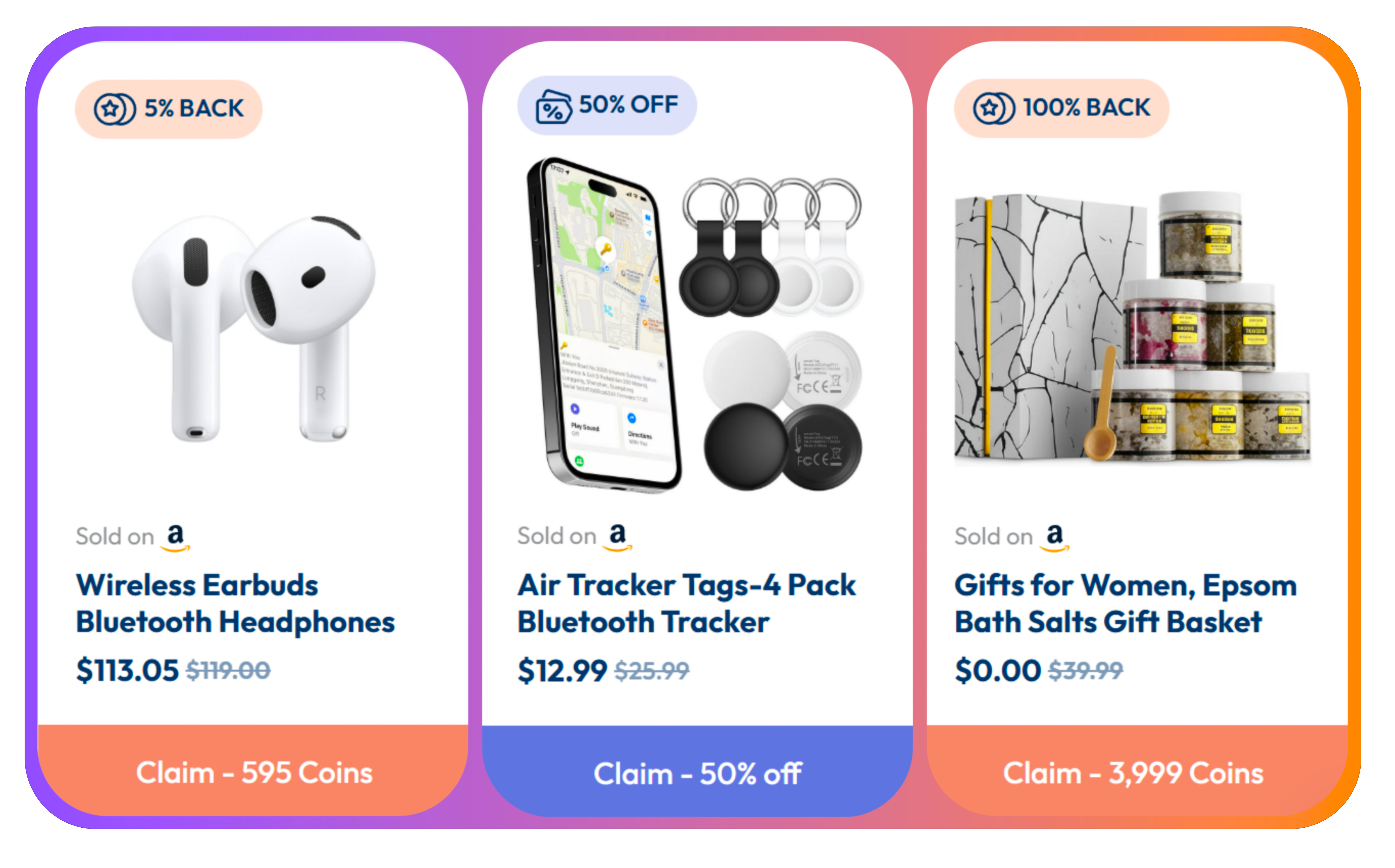 Buy your favorite products on marketplaces like Amazon & Walmart. Earn discounts and cashback by helping brands grow.