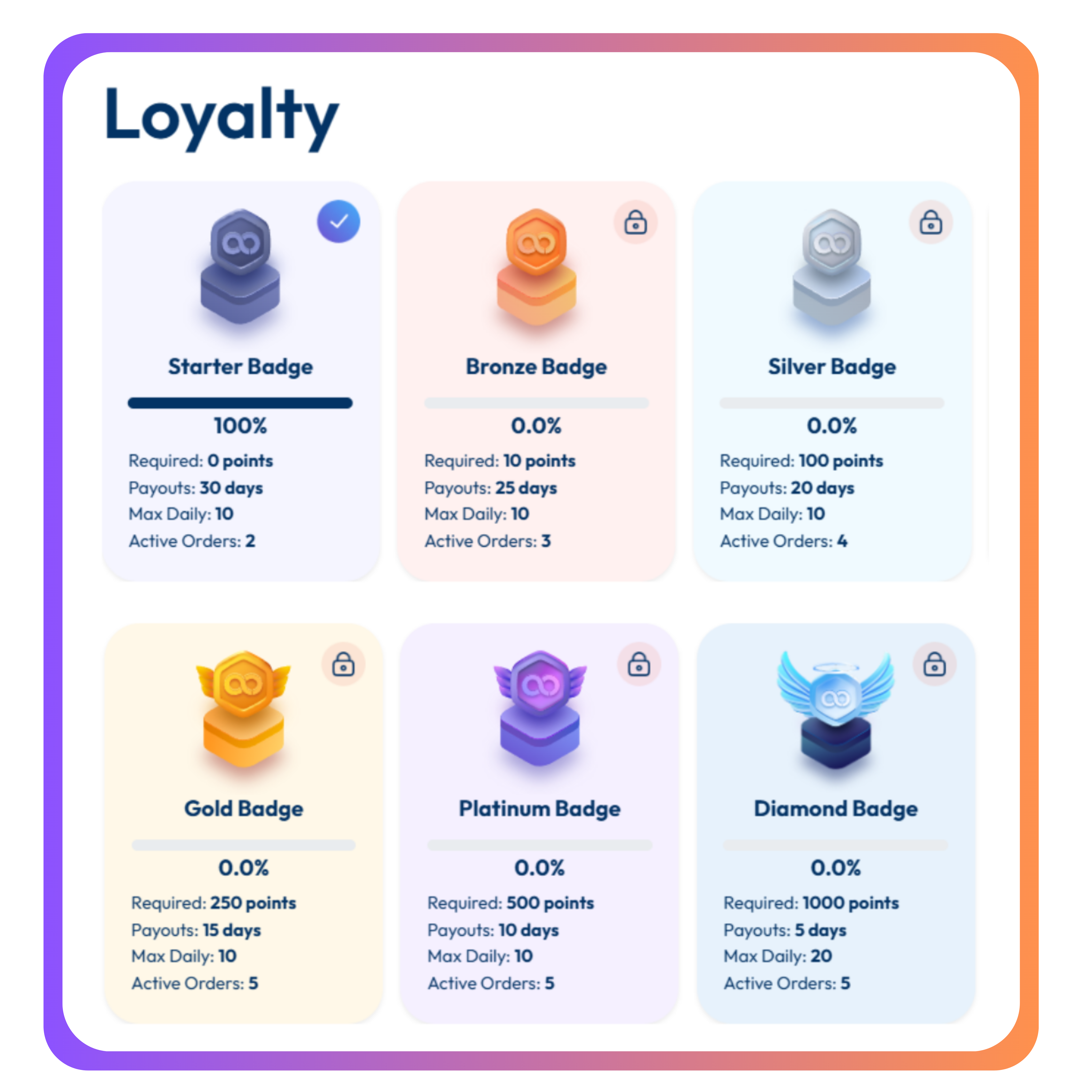 Every purchase earns you loyalty points and badges. Level up, and you unlock faster rewards, access to more deals, and exclusive perks designed to make your shopping experience even sweeter.